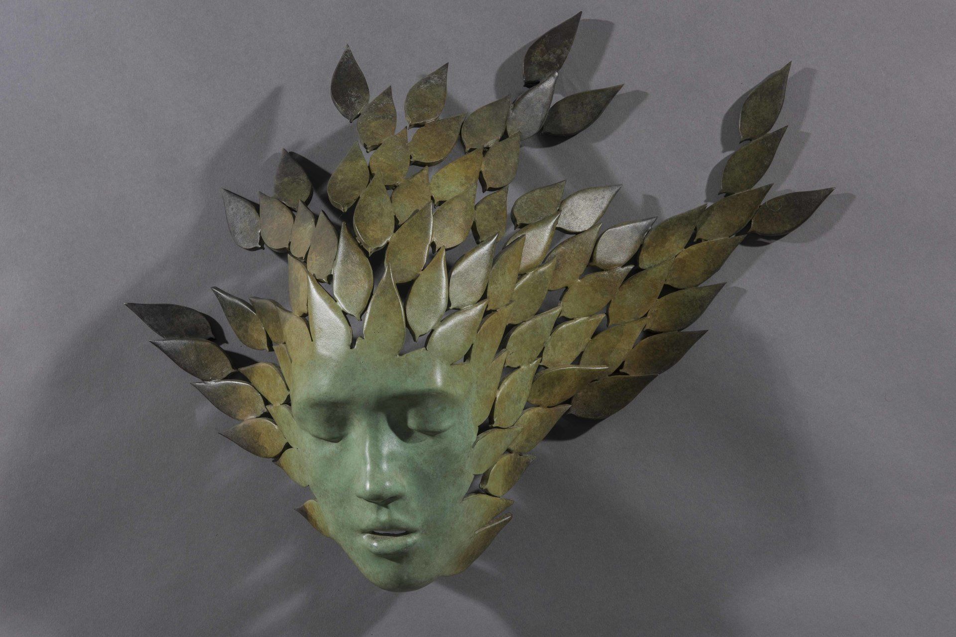 Each of the life size pieces is unique and I fabricate them by welding up to 1500 bronze leaves together to creat the form. The delicate latticework created by the leaves adds to the ethereal quality of the piece and allows her to blend in with her surroundings. Creating a unique piece out of bronze leaves allowed me to convey those qualities and these are some of the most satisfying sculptures I have produced.